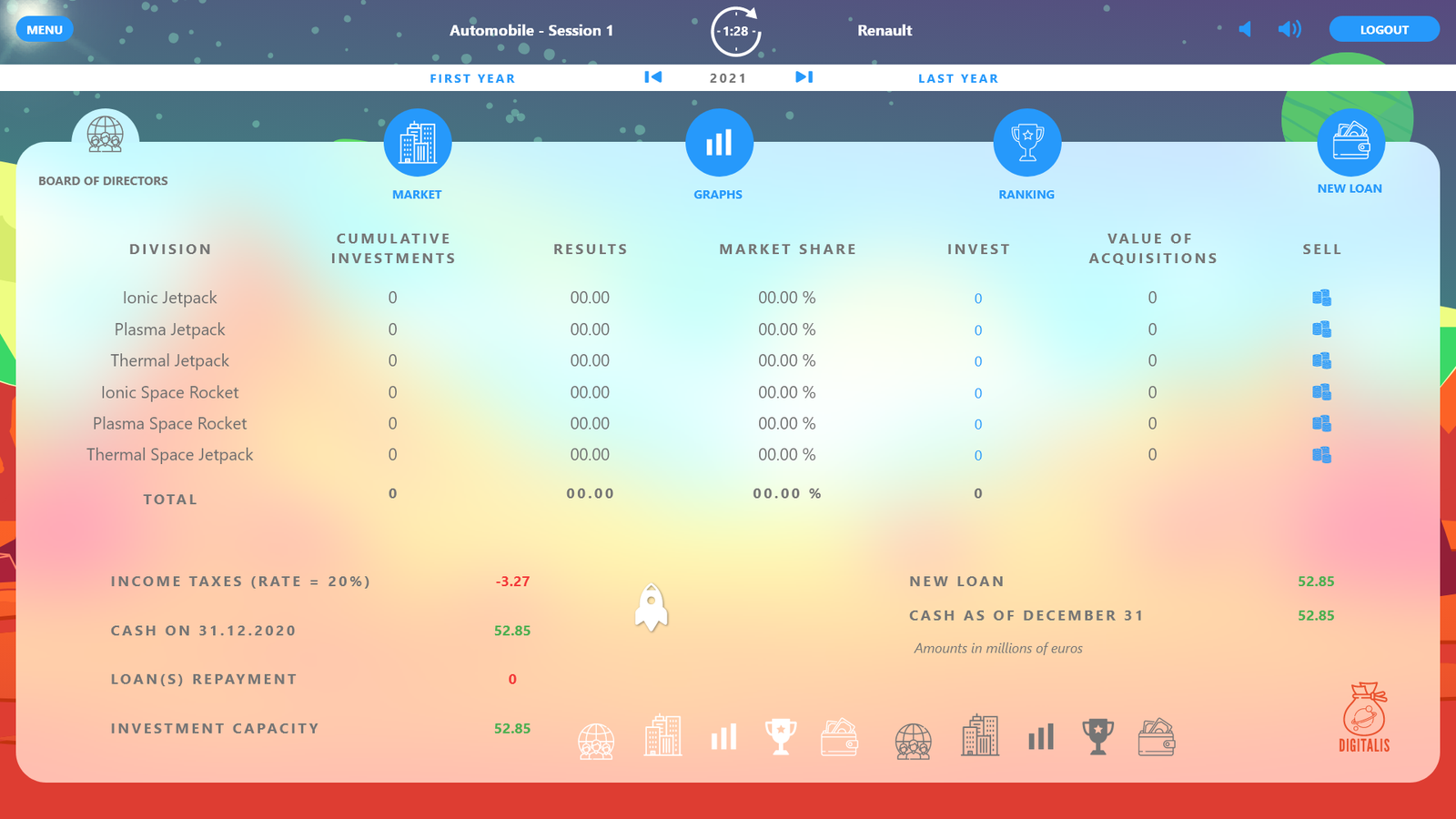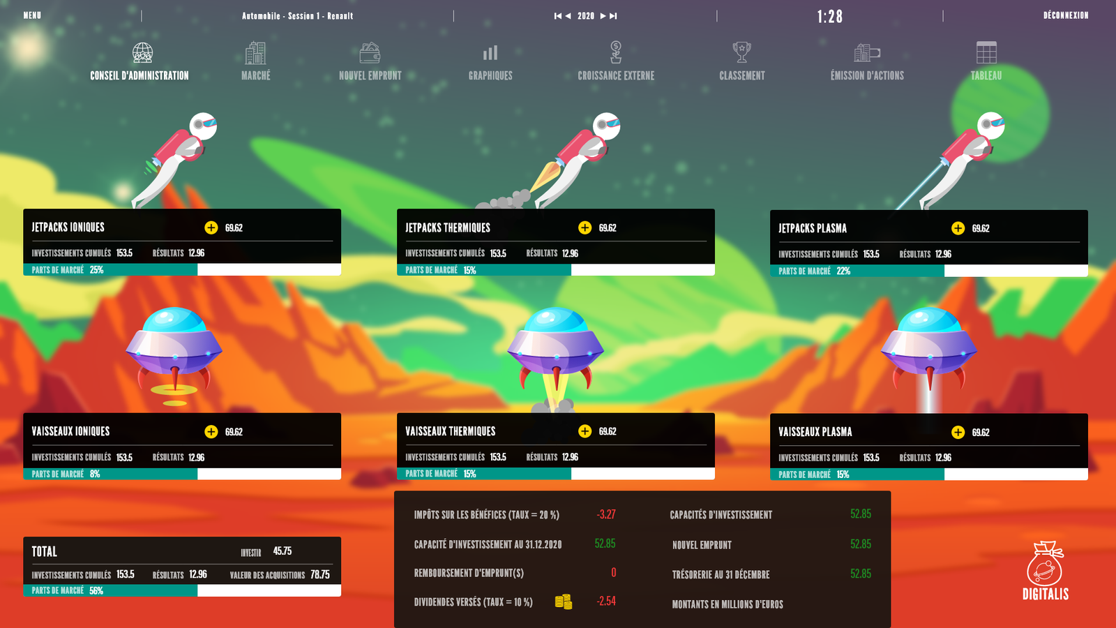 réalisation DIGITALIS UI Résumé Qbisme, agence spécialisée en création de solutions digitales, a réalisé l'interface de Digitalis. Nous avons travaillé pour Interactive 4D pour concevoir l'interface (UI/UX Design) de ce logiciel multi plateforme (mobile, tablette, PC, Mac) d'éveil à la gestion d'entreprises pour les 9-15 ans. Pour créer cette interface, nous avons dû développer un cadre visuel qui soit à la fois facile à comprendre et adapté au public cible. Nous avons donc conçu une interface qui soit attrayante et épurée avec des couleurs vives et des icônes conviviales.